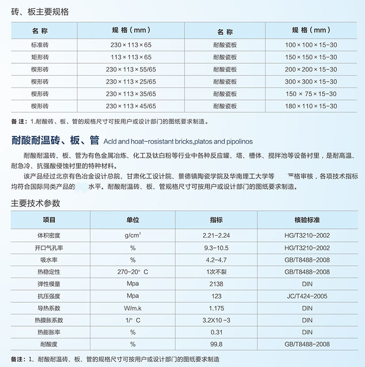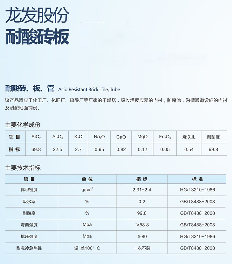 耐酸瓷板的主要成分是sio2,它在高溫焙燒下形成很多的多鋁紅柱石,這是一種耐酸性能高的物質(zhì).耐酸板由于結(jié)構(gòu)緊密,吸水率小,所以在常溫下也能夠耐任何濃度的堿性介質(zhì),但溫度高的熔融堿除外.耐酸板含有二氧化硅70%以上,經(jīng)燒結(jié)而成,在化學(xué)工業(yè)中常用于砌酸溝、酸井、貯酸庫(kù)與載酸大的受沖擊地面。