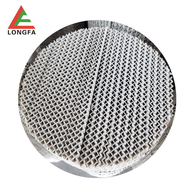 陶瓷規(guī)整填料是一種在培內(nèi)以均勻幾何圖形排布,整齊堆砌的培填料。規(guī)整填料主要是取代塔內(nèi)散堆填料,解決阻力大、比表面積小,傳質(zhì)效能差、易破碎等突出問題。它規(guī)定了氣液流路.改善了淘流、壁流和潤濕性能.降低了阻力,同時提供更多的氣液接觸面積從而提高了傳質(zhì),傳熱效果??蓮V泛用于煤氣洗滌塔.焦化洗滌,洗苯、洗氨培、化肥熱氣飽和、脫硫酸、硫酸干燥、吸收塔等。陶瓷波紋規(guī)整填料是用硬質(zhì)瓷構(gòu)成,主要成分粘土、石英、長石等經(jīng)特殊烘燒而成。其形成是由許多具有相同幾何形狀的單元體波紋片相互平行,叉疊加組成。