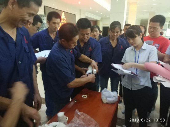 此次比賽除了必答、搶答和風(fēng)險題等環(huán)節(jié),還專門增設(shè)了針對實際安全實操技能,如包扎、滅火器的使用、消防栓消防水帶的使用以及系安全帶等?,F(xiàn)場職工熱情高漲積極參與,通過激烈的角逐,成品倉代表隊奪得一名;公司機(jī)關(guān)代表隊奪得二名;制泥車間代表隊奪得三名。搪球車間代表隊以優(yōu)異積極的表現(xiàn)獲得評委組和觀眾的認(rèn)同,獲得本次競賽的“組織獎勵”。